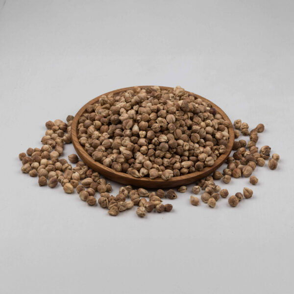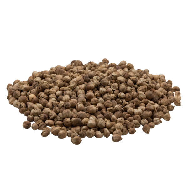 Hàng chọn đẹp. Quả hình cầu dẹt, có 3 múi, đường kính 1–1,5 cm, vỏ màu trắng ngà, khô và dễ tách. Mỗi quả chứa 20–30 hạt gọi là khấu mễ, tập hợp thành khấu cầu chia làm 3 múi, mỗi múi có 7 hạt đến 10 hạt. Hạt hình khối nhỏ, màu nâu nhạt đến nâu thẫm, có vân nhỏ, chất cứng, chứa nhiều tinh dầu. Mùi thơm, vị cay.
