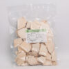Dược liệu thái miếng vuông. Thể quả khô có hình cầu, kích thước lớn nhỏ khác nhau. Bên trong mặt có màu trắng hoặc trắng ngà