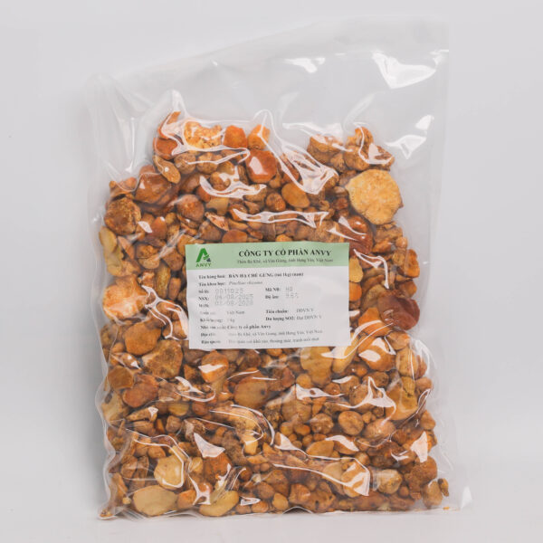 Dược liệu có dạng hình cầu hay hình cầu dẹt, đường kính 1 cm đến 1,5 cm. Mặt ngoài trắng hay vàng nhạt. Thể chất hơi xốp, giòn hoặc cứng, mặt cắt trắng và có nhiều bột. Mùi nhẹ, vị hăng, tê và kích ứng.