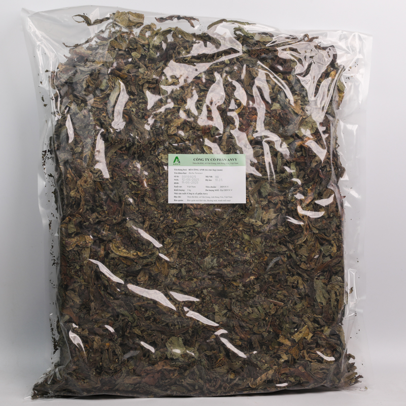 Lá mỏng nhăn nheo, nhiều hình dạng, thường có lá hình mũi mác, gần như không có cuống, mặt trên màu nâu sẫm, mặt dưới màu nâu nhạt, mép lá khứa răng cưa, to nhỏ không đều. Vị hơi đắng. Đoạn thân dài 3 cm đến 5 cm, tròn, thẳng, lõi xốp, mặt ngoài màu nâu nhạt, lốm đốm, có mấu mang lá hoặc vết tích của cuống lá.