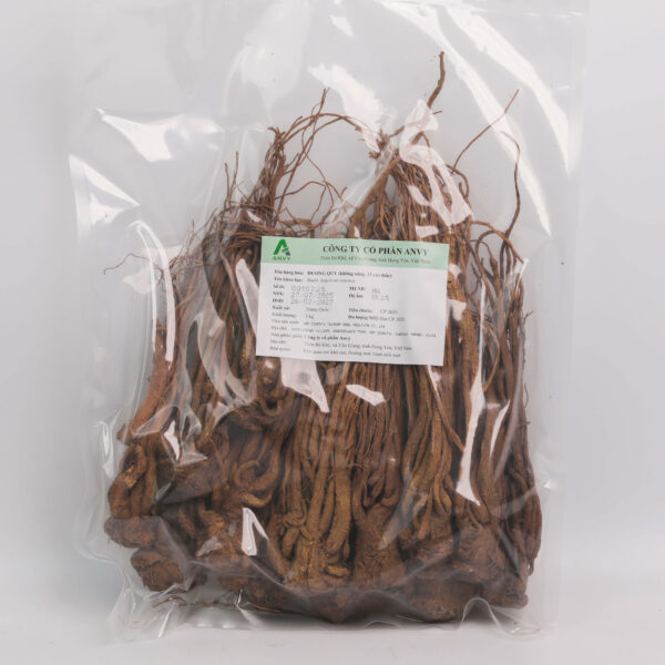 Rễ dài 10–20 cm, gồm nhiều nhánh, chia ba phần: quy đầu, quy thân và quy vĩ. Mặt ngoài màu nâu nhạt, có nhiều nếp nhăn dọc, mặt cắt ngang vàng ngà, thấy rõ vân tròn và điểm tinh dầu. Dược liệu Hàng nguyên củ, không xông diêm. Mùi thơm đặc trưng, vị ngọt, cay, hơi đắng.