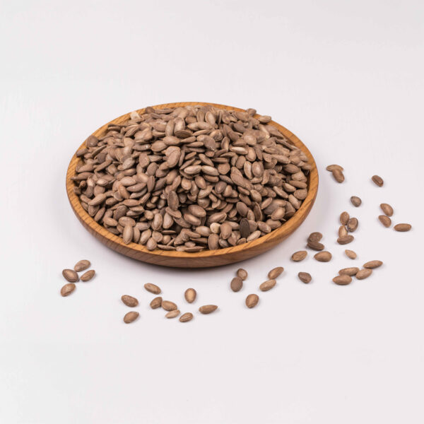 Hàng sạch, chọn. Hạt hình bầu dục dẹt, phẳng, dài 12 – 15 mm, rộng 6 – 10 mm, dày 3,5 mm. Mặt ngoài màu nâu nhạt đến nâu thẫm, trơn nhẵn. Xung quanh mép hạt có rãnh tròn. Đỉnh hạt tương đối nhọn. Đáy hạt tròn tù. Vỏ hạt ngoài cứng, vỏ hạt trong là màng mỏng, màu lục xám, bọc lấy 2 lá mầm dày, màu trắng ngà, chứa nhiều dầu. Mùi nhẹ. Vị hơi ngọt dịu, hơi đắng.