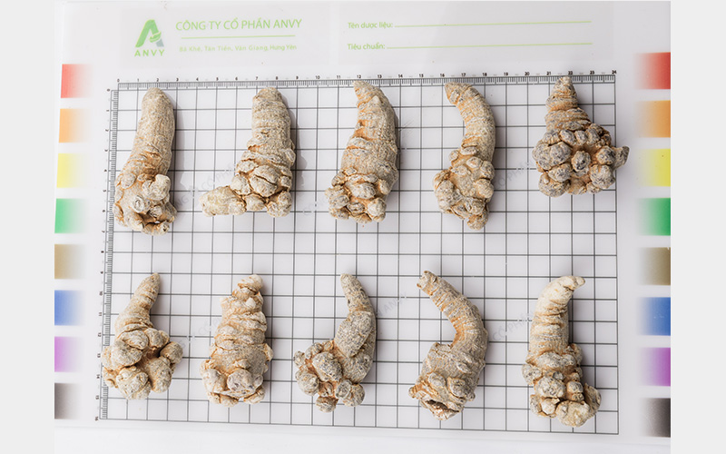 Rễ củ, hình trụ hoặc nón, mặt ngoài màu vàng xám nhạt. Chất cứng rắn, khó bẻ, khó cắt. Khi đập vỡ, phần gồ và phần vỏ dễ tách rời nhau. Mặt cắt ngang có lớp vỏ màu xám nhạt, có những chấm nhỏ màu nâu (ống tiết), phần gỗ ở trong màu xám nhạt, mạch gỗ xếp hình tia tỏa tròn. Mùi thơm nhẹ đặc biệt, vị đắng hơi ngọt.