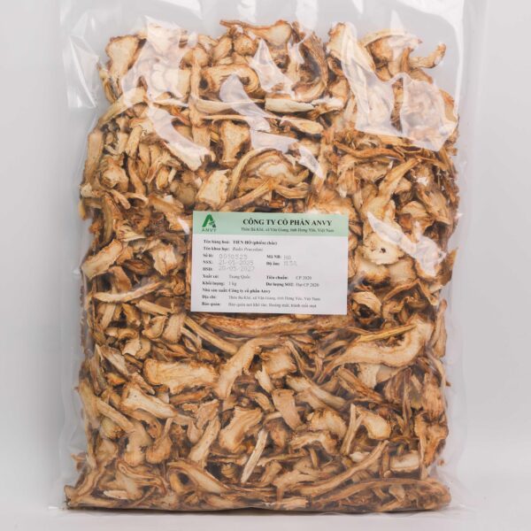 Hàng phiến chọn, khô sạch. Hình trụ không đều, hình nón hoặc hình thoi. Bề mặt nâu xám, thể chất tương đối mềm. Mẫu khô cứng và dễ gãy, bề mặt gãy không đều, mùi thơm, vị ngọt sau hơi đắng và cay.