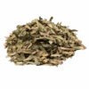 Hàng phiến, sạch khô. Phiến lá hình bầu dục hoặc hình trứng ngược, mép lá răng cưa thưa, nhăn ở gốc lá. Mặt trên màu xanh xám, nâu vàng hoặc nâu đỏ. Thể chất giòn, dễ gãy, mùi nhẹ, vị hơi đắng.